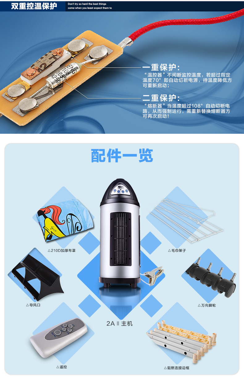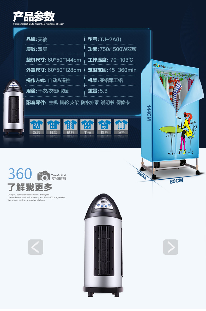 型號: TJ-2A(I) 顏色分類: 天空藍(lán) 藍(lán)色 功率: 1001W(含)-1500W(含) 形狀: 立方形 承載重量: 10kg-15kg 最大定時范圍: 241分鐘(含)-480分鐘(含) 有無腳輪: 有 是否有斷電保護(hù)功能: 有 加熱方式: PTC 適用場景: 家用 支架材質(zhì): 鋁合金 控制方式: 電腦式